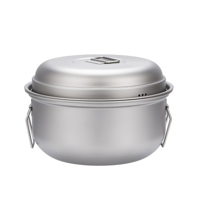 户外大容量纯钛汤锅露营钛锅套装蒸锅轻量便携野营家用钛餐具2.8L