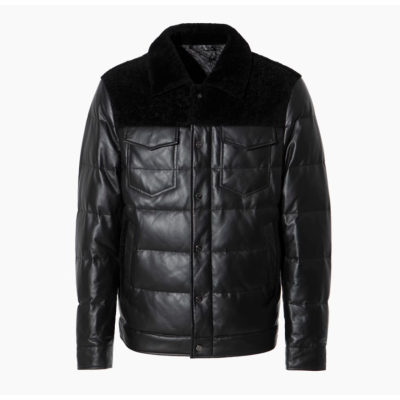 RARE威雅男装 秋冬新款男士黑色翻领皮羽绒服短款皮衣外套