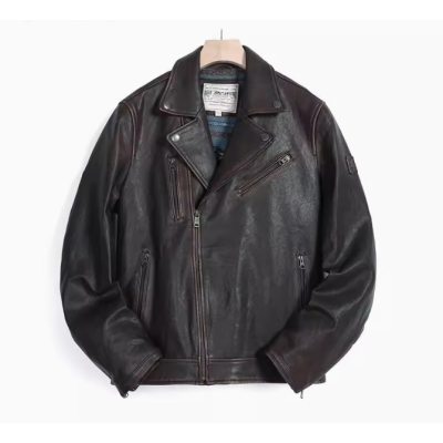 MCS源自万宝路新款经典褪色水洗做旧机车款绵羊皮美式修身皮衣男