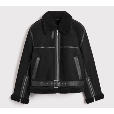 MCS源自万宝路新款经典褪色水洗做旧机车款绵羊皮美式修身皮衣男