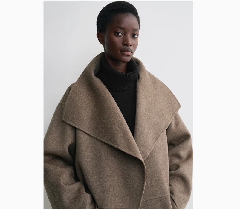 TOTEME女装 25早春新款经典花纱橡木色落肩双面羊毛大衣外套