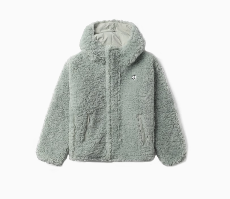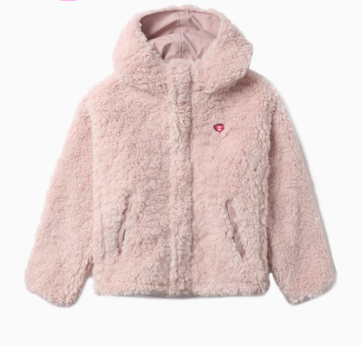 APEE女装秋冬撞色猿颜爱心刺绣毛绒连帽夹克外套