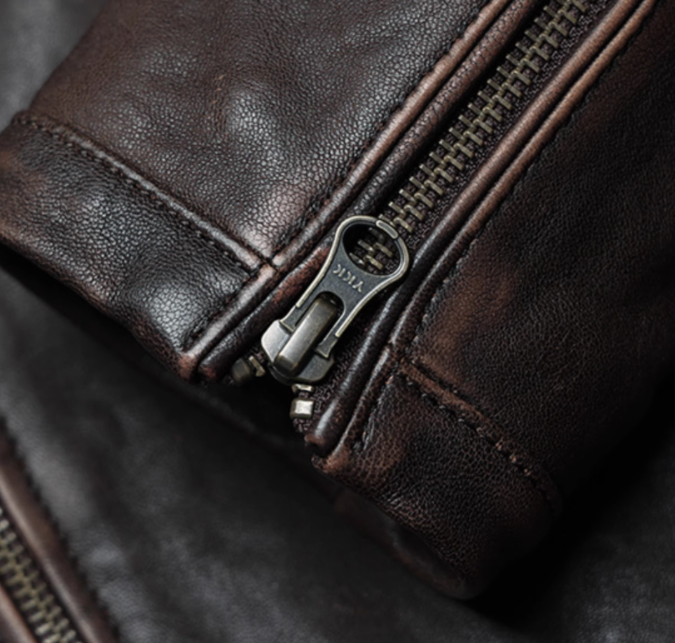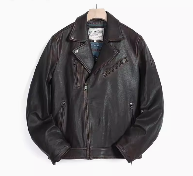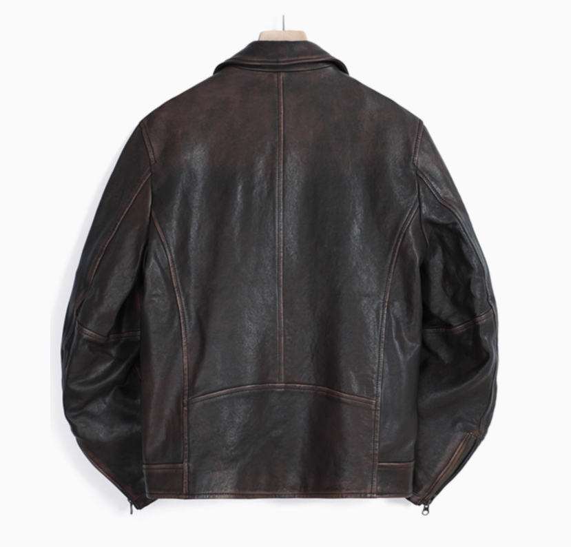 MCS源自万宝路新款经典褪色水洗做旧机车款绵羊皮美式修身皮衣男